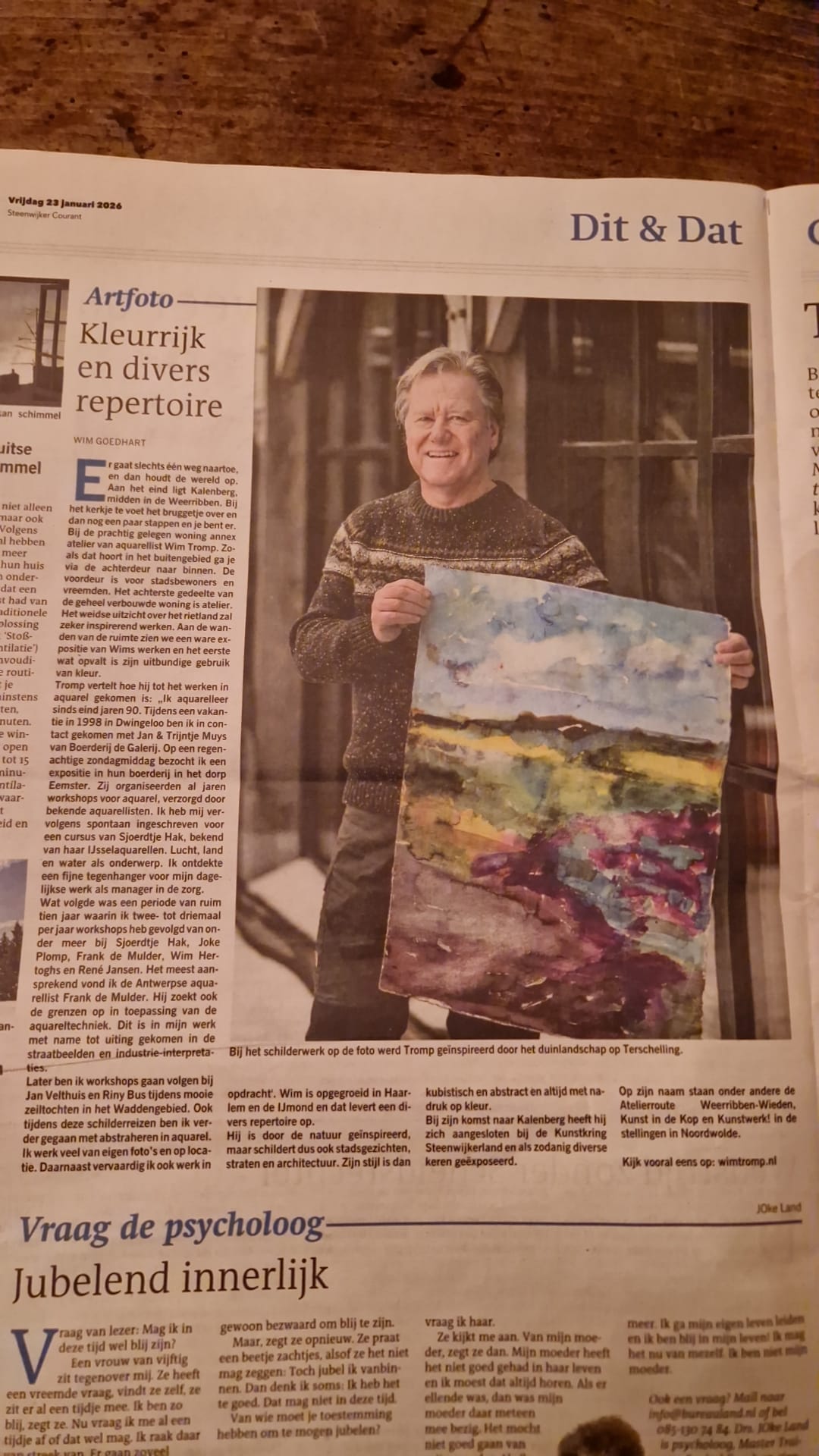 Artikel in de Steenwijker Courant Op vrijdag 23 januari 2026 schreef de Steenwijker Courant onderstaand artikel over Wim Tromp:
